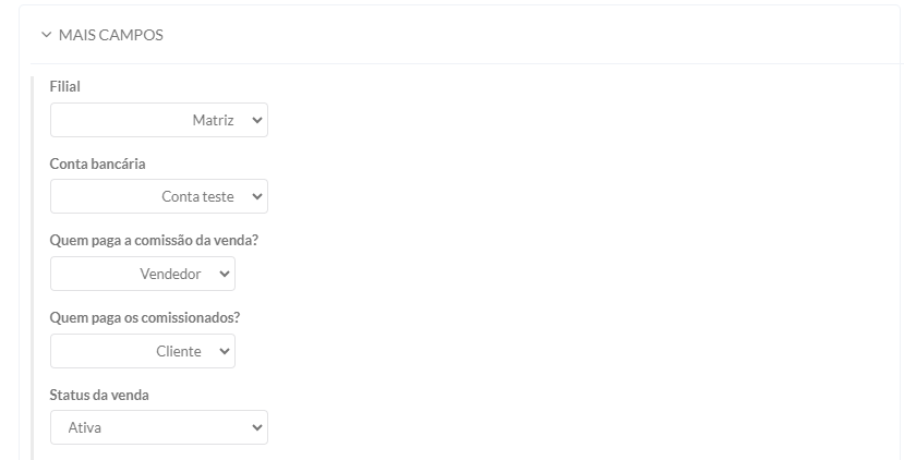 8. Além da opção “Mais campos” que possui algumas outras configurações, como: