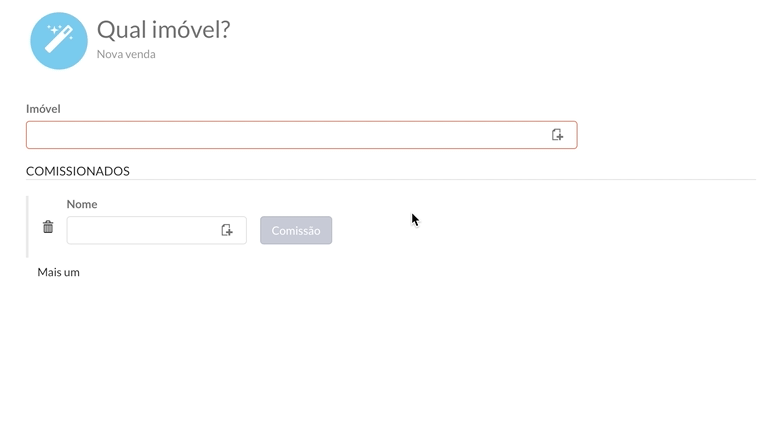 2. Na página Qual o imóvel? será necessário incluir o endereço do imóvel da venda, o nome dos comissionados e a porcentagem da comissão, depois basta clique em Próximo: