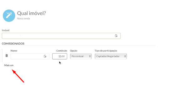 3. Caso queira incluir mais de um comissionado, basta clicar em mais um.