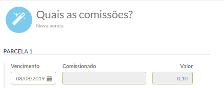 9. Na página Quais as comissões?, especificar o vencimento, comissionado e valor: