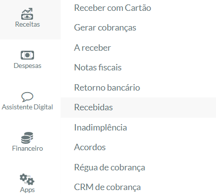 1. Acesse o menu "Receitas > Recebidas":