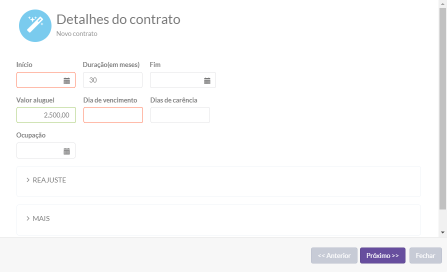 Vamos ao passo a passo para entender o processo de inserir a data de ocupação e após isso, ativar a geração de primeiro aluguel proporcional.