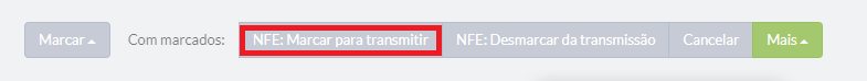 Em seguida terá acesso a todas as notas pendentes do período selecionado, onde poderá selecionar todas as notas no canto esquerdo da tela e clicar na opção "marcar para transmitir" que fica no final de tela: